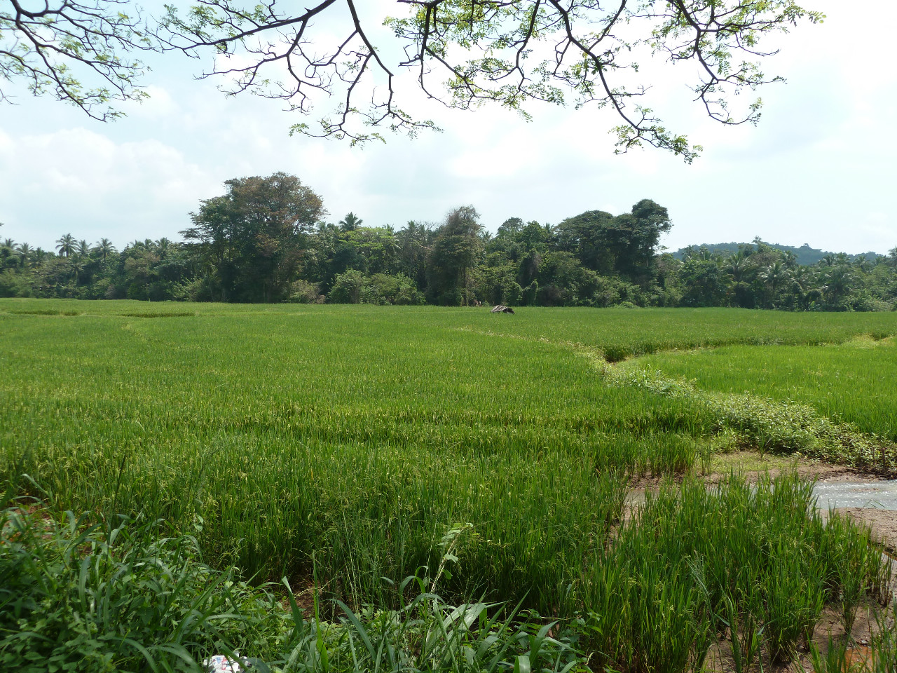 Base de l'alimentation des Sri Lankais, les rizières occupent une très large place dans les paysages locaux. On les trouve pour la plupart nichées entre la lisière de la jungle et le bord des routes, sous format "plat" dans la mesure où le pays compte peu de relief, sauf bien sûr dans la seule région montagnieuse du pays où on peut apercevoir de rares rizières en escalier.