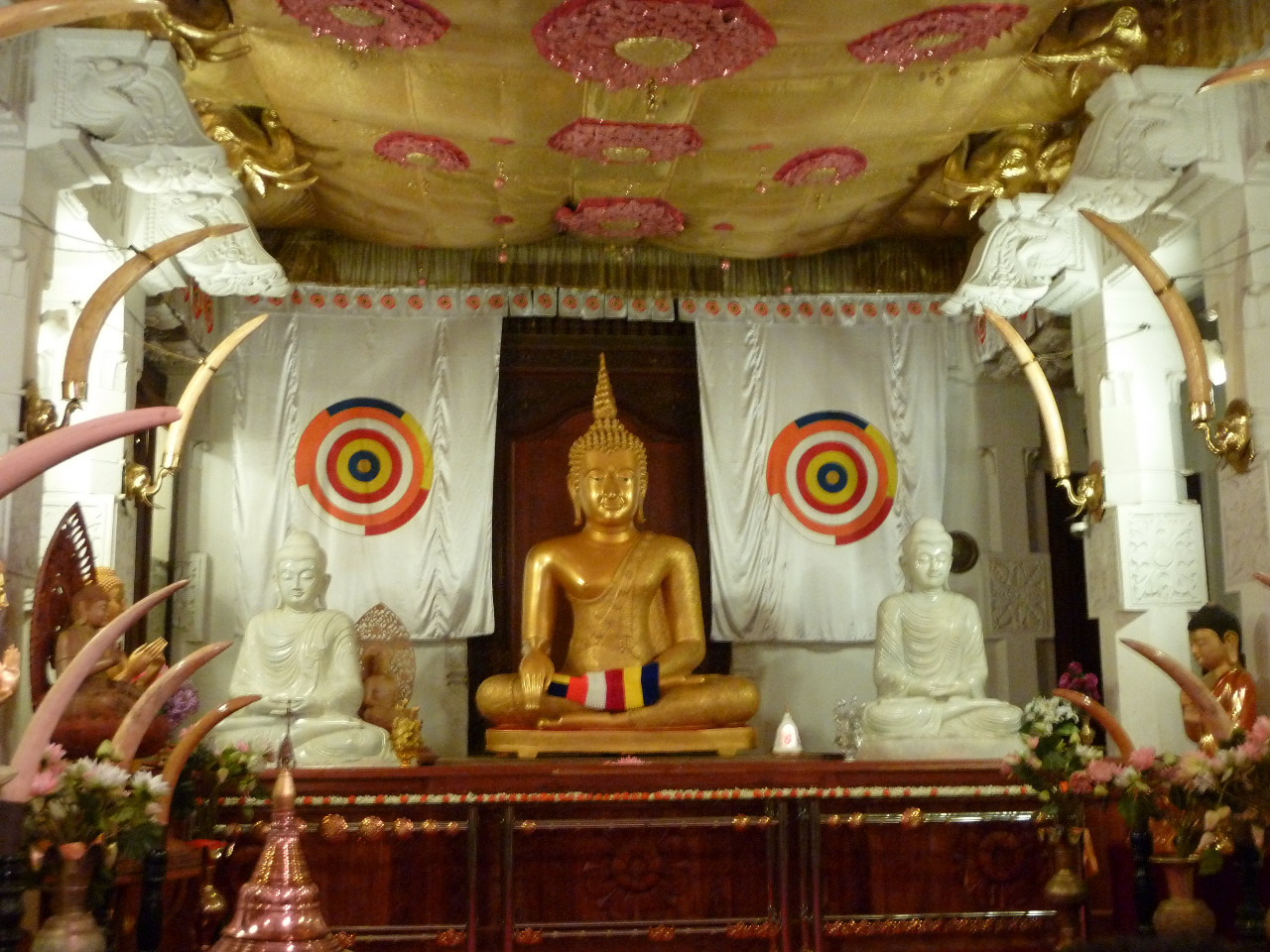 La ville entière de Kandy tourne autour de son temple. Lieu de pélerinage incontournable pour bon nombre de bouddhistes, le temple de Kandy recèle la relique de la dent de Bouddha, qu'on expose furtivement au public deux fois par semaine, provoquant ainsi à l'intérieur du temple une ferveur et une fièvre communicative que je ne saurais décrire. Le temple lui-même est un bijou d'architecture, tant son intérieur que sa façade. Depuis un attentat survenu dans les années 90, on passe au détecteur de métaux avant de pénétrer dans l'enceinte.